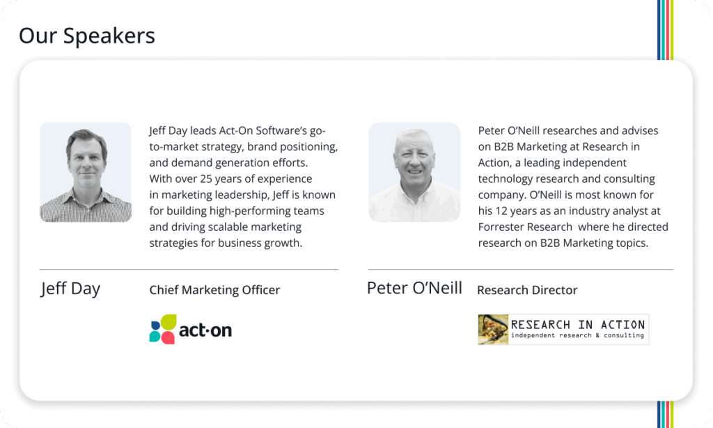 Join Peter O’Neill, Research Director at Research In Action, and Act-On CMO Jeff Day as they discuss the findings from the 2024 Revenue Marketing Automation Vendor Selection Matrix™ report. Learn why RMA is the future, what top-performing vendors are doing differently, and how Act-On is helping marketers move beyond lead gen into full revenue marketing maturity.