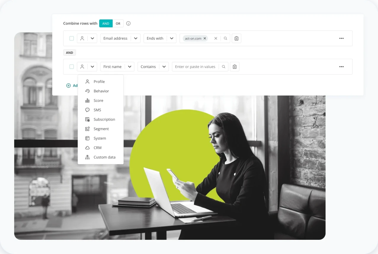 Marketing segmentation is the portal to more personalized and engaging digital marketing campaigns. By understanding your prospective and existing customers’ behavioral, demographic and firmographic traits and tendencies, you can better understand and anticipate their needs and interests. Act-On advanced and dynamic marketing segmentation features help you achieve precise audience segmentation to pair great content and messaging with enthusiastic targets!