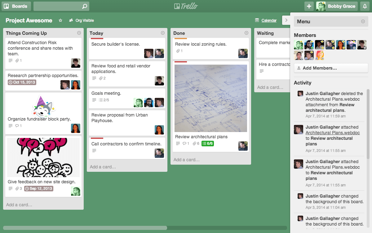 Trello also lets you add checklists for each card. If you have a content creation process (e.g., research, first draft, edit, publish, promote), you can track each piece of content as it moves toward completion.