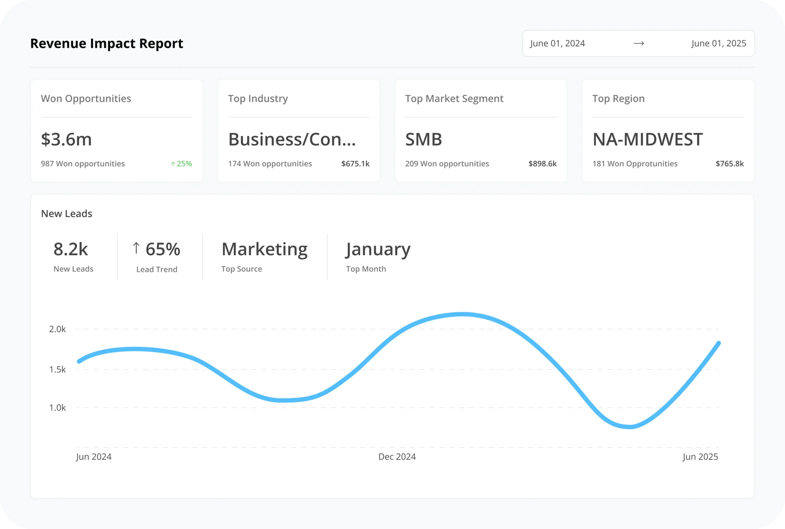 Track and share Marketing’s impact on business with Revenue Impact and Pipeline reports. Dive into funnel performance and conversion rates with cohort analysis. Analyze which channels are working best with Attribution reports.